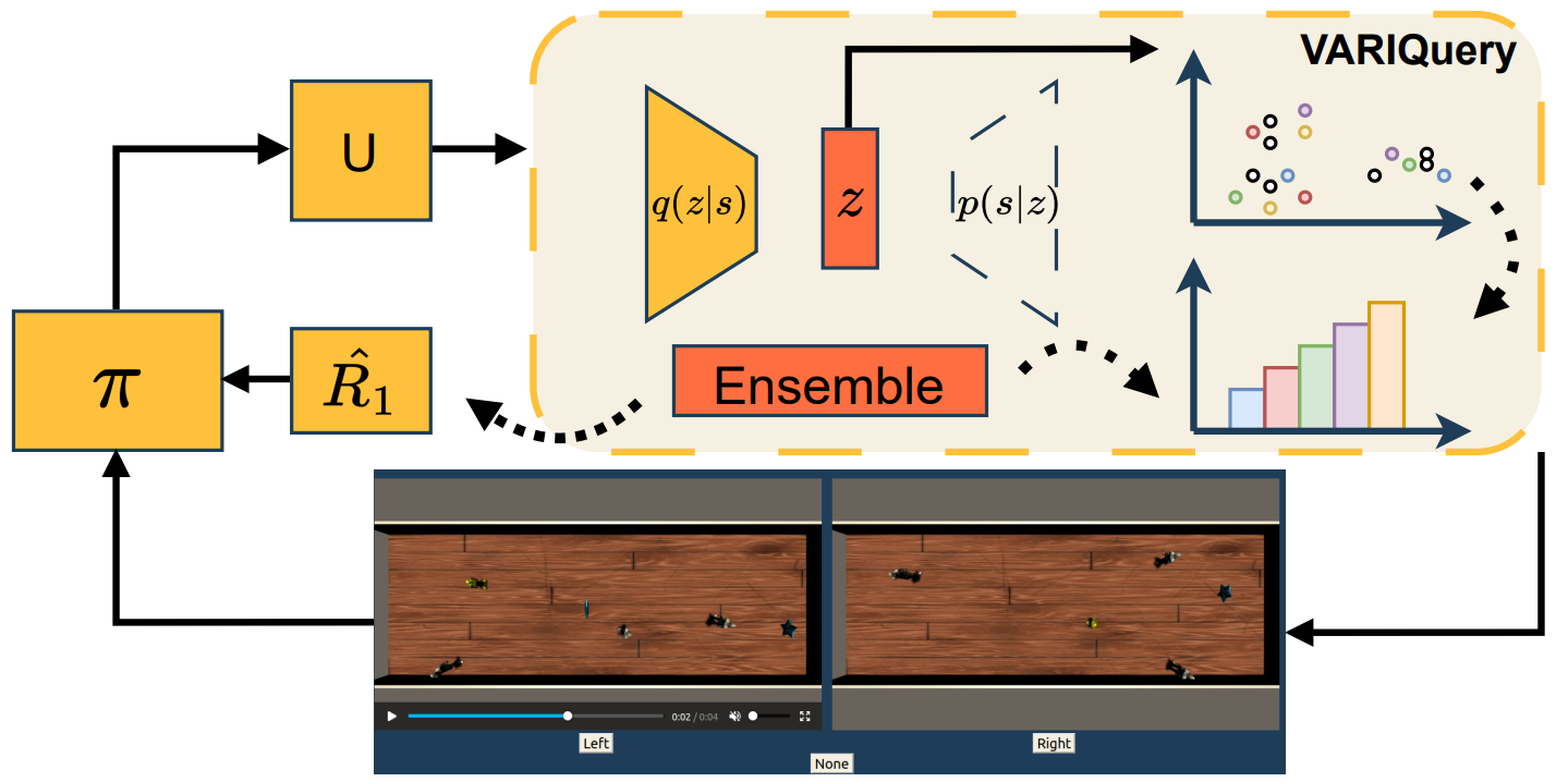 This paper addresses the often-overlooked aspect of query selection, which is closely related to active learning (AL). We propose a novel query selection approach that leverages variational autoencoder (VAE) representations of state sequences. In this manner, we formulate queries that are diverse in nature while simultaneously taking into account reward model estimations.